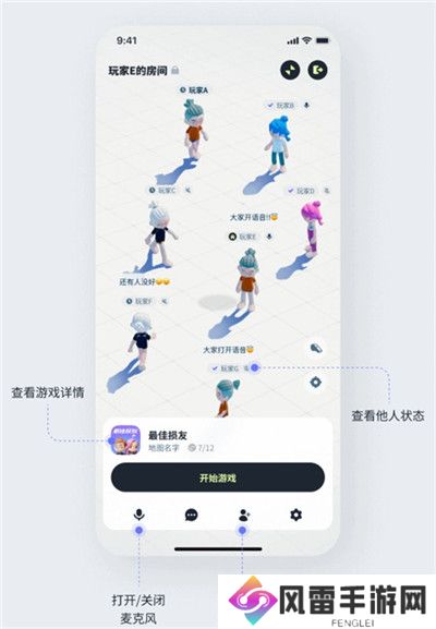 2、派对广场:首页上每个角色都代表着平台上的活跃玩家。你可以点击感兴趣的角色,查看他们的状态,与他们聊天,甚至加入他们的游戏。