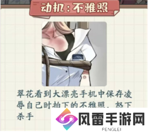 起初只是想教训下大漂亮,但看到大漂亮手机中自己的不雅照,盛怒之下,下了杀手。