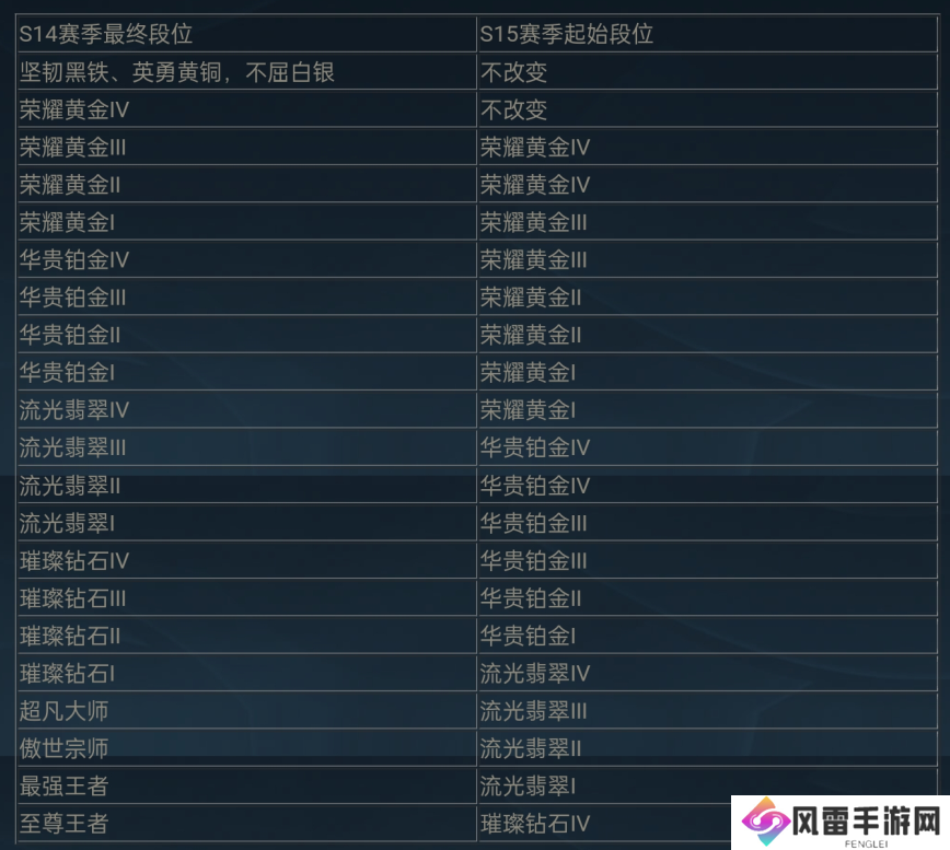 每个赛季开始会根据之前的段位来调整初始段位,黑铁、黄铜、白银、黄金4保持不变,其余的段位继承情况则如下图所示,想要冲到特定段位的玩家可以留心一下。