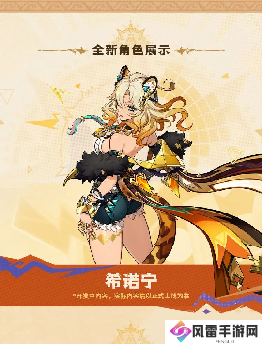 第一个角色是希诺宁,这是一个岩元素的单手剑角色,希诺宁作为纳塔地区的优秀锻造师,有非常强力的增伤辅助能力,和钟离这种生存型的辅助不同,她的技能效果专注于提升队伍的暴击以及爆伤能力,队伍需要增伤的情况下可以选择她,喜欢岩系辅助的话一定要选择她。