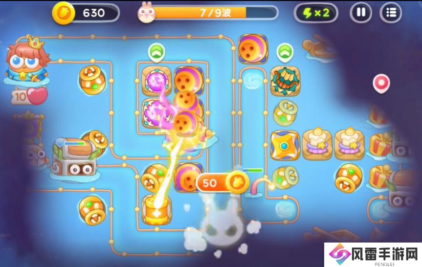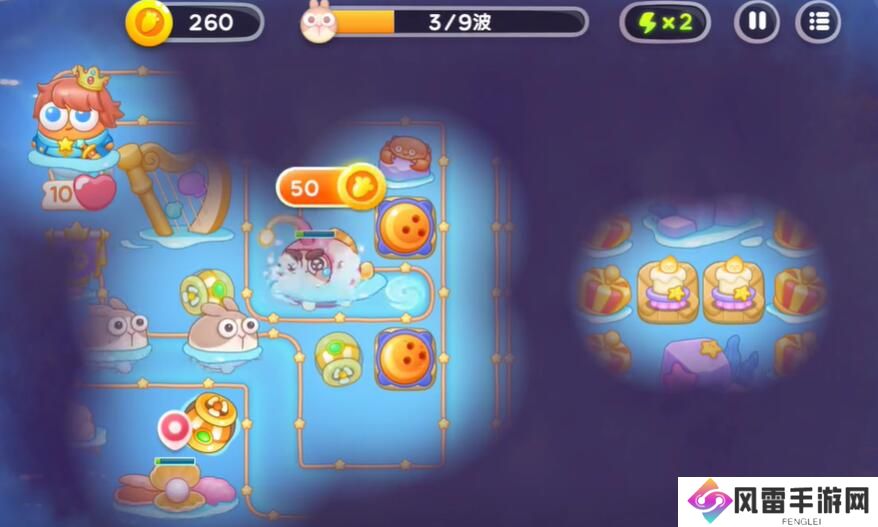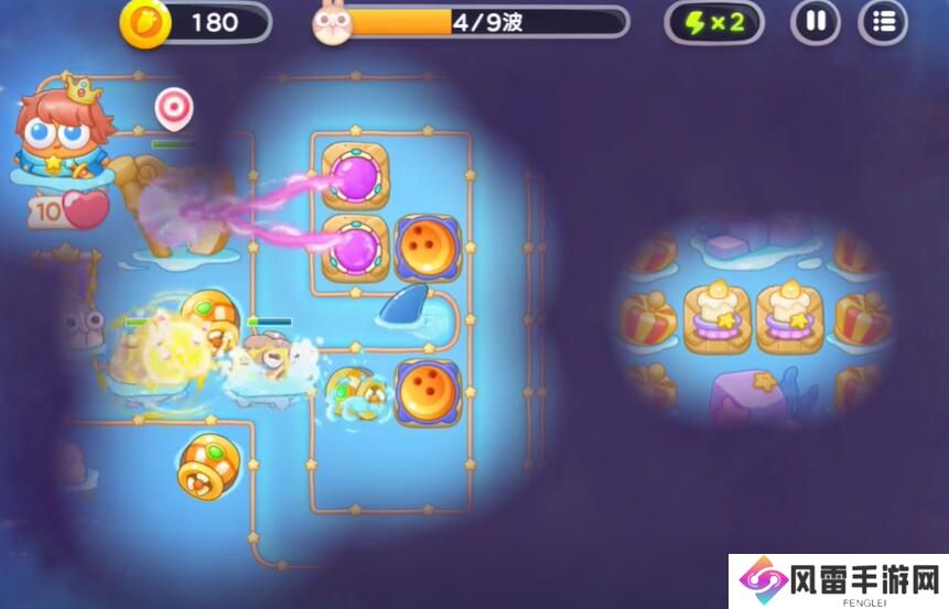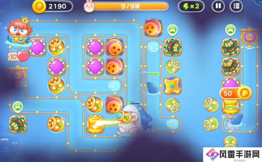 10、在左上角和右下角方便建造一个闪电塔和一个鱼雷塔进行输出,即可完成这个关卡。