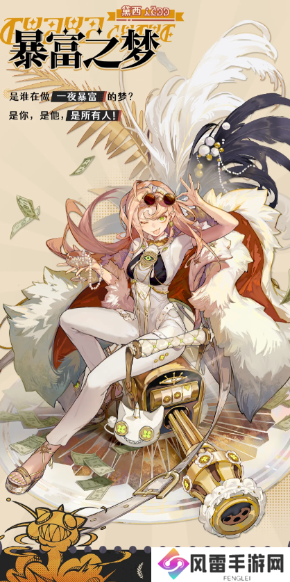 她的生存技会让自身朝指定方向翻滚一段距离,在翻滚的期间自身是无敌状态,翻滚后暴富之梦还可以随机在三种子弹的普攻模式中进行一次切换,并回满所有的能量值,她的特性技会根据当前的普攻模式消耗全部的能量值发射一次炮弹,这个炮弹命中敌人会造成范围伤害并重新分裂成子弹,再造成一次伤害。