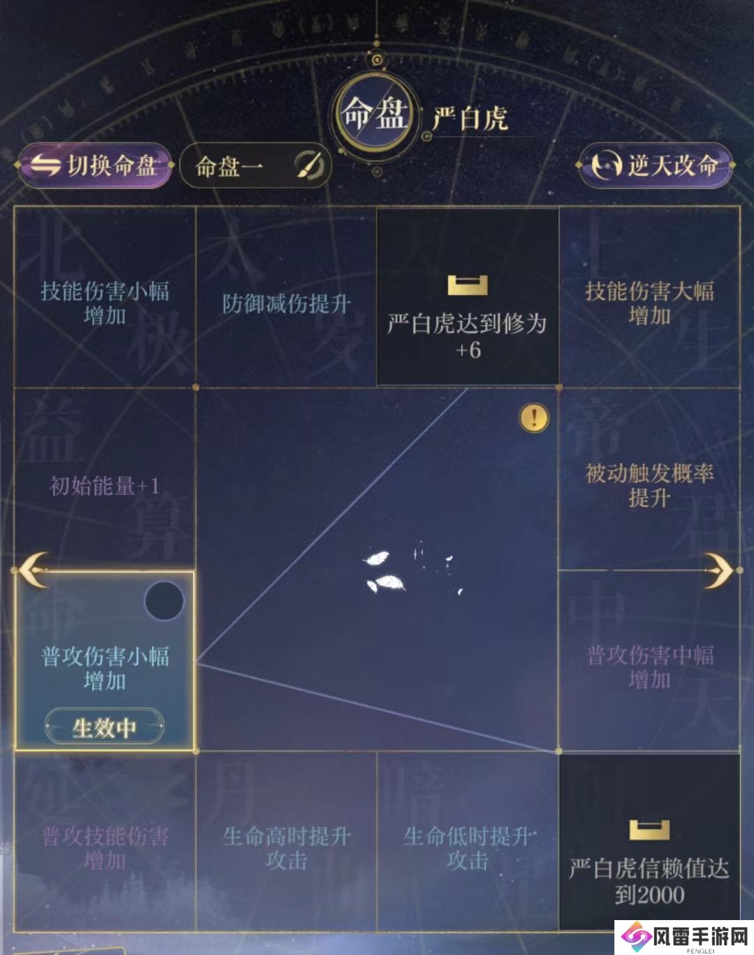 综上就是有关如鸢严白虎命盘推荐的全部内容,当然小伙伴们如果有其他的搭配方向也是可以的,不过基本上都是提高自己的输出,如果有的小伙伴想多来一点大招效果的话,也可以选择解锁自己初始能量这一栏。