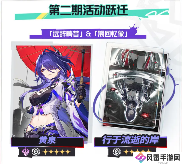 首先当然就是关于角色跃迁的活动了。第一期活动的跃迁就是关于新角色乱破的,同时还有复刻的丹恒·饮月君,另外包括了几个陪跑的四星角色以及四星的光锥;第二期的跃迁是黄泉以及砂金,还有对应他们的光锥,四星陪跑也是相当不错。