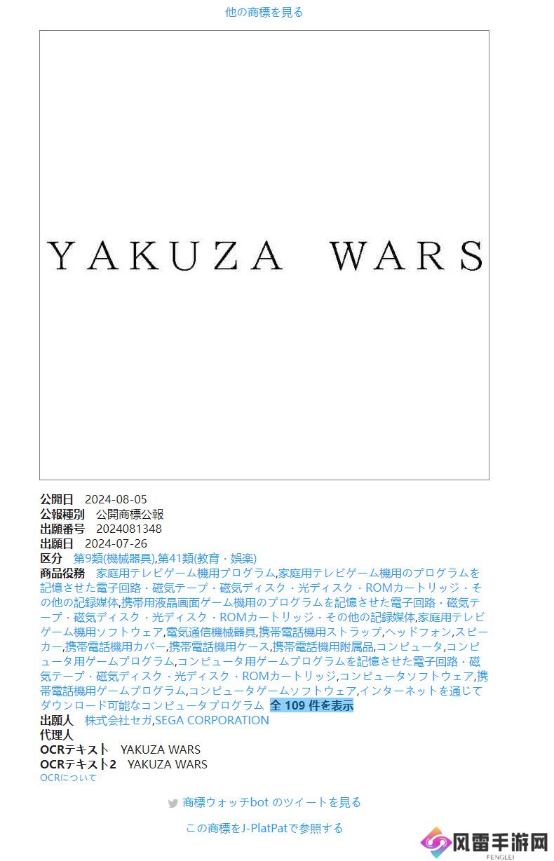 SEGA 于今年7 月时在日本申请了「Yakuza Wars」商标,现在谜底揭晓——正是为《极道斗争:人中龙凤》蓄势待发。