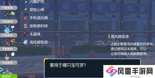 4、我们可以在拍卖会上购买道具“洛托姆型录”,接着我们打开背包对托姆使用就能让它完成形态转变了。