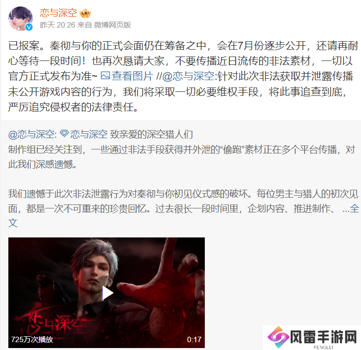 叠纸《恋与深空》新男主素材被恶意泄露,官方震怒!