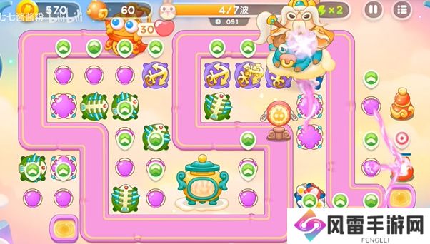 3、接着太上老君会出现,此时玩家需将场上的道具进行升级来增加火力;