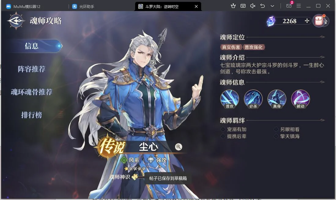 后期:尘心生存队 > 风笑天异常队 > 比比东残血队 > 唐三暴击队 > 戴沐白追击队