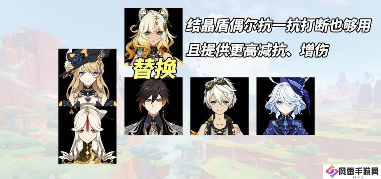 希诺宁替换队伍内的钟离,本身双岩体系+芙宁娜就有结晶护体,抗打断不是那么刚需,换成增伤减抗可以进一步提升队伍的输出上限。