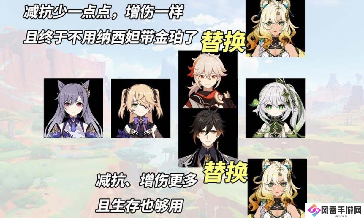 替换万叶可改善队伍减抗覆盖率、转火等等问题。