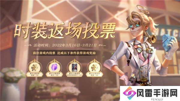 最终票选出的时装将与【稀世时装】“囚徒”-灵犀妙探、【稀世随身物品】“囚徒”-水晶宫、【稀世时装】小提琴家-孤月骑士及【奇珍随身物品】小提琴家-月光在3月23日维护后限时返场商城。