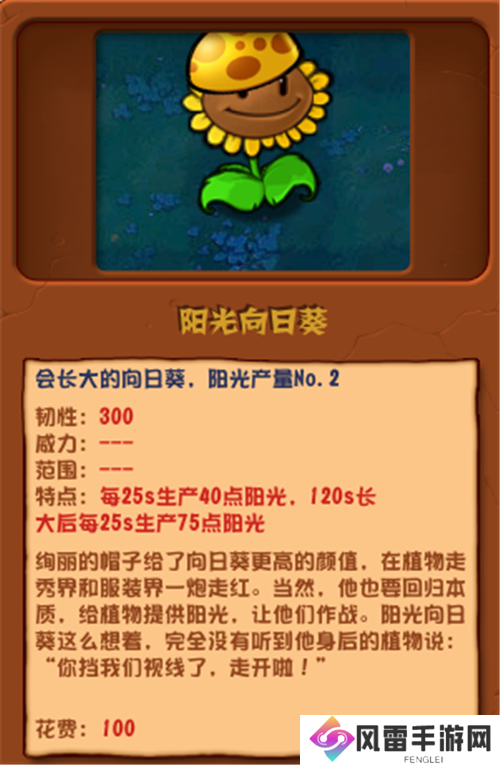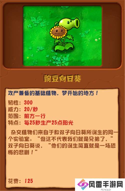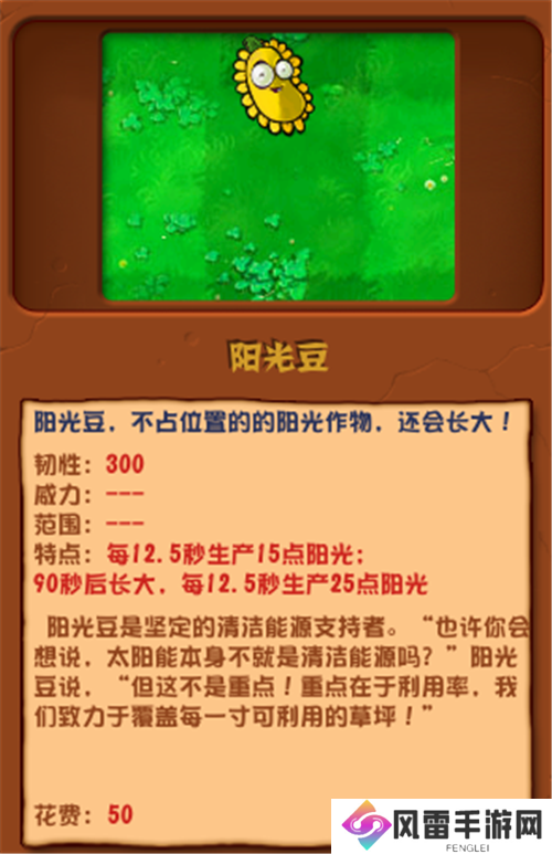 评价:成长型植物中的佼佼者,配合阳光豆,25秒内产出125点阳光。前10关仅需5棵,阳光无忧。