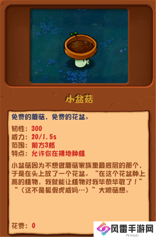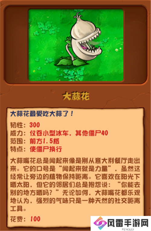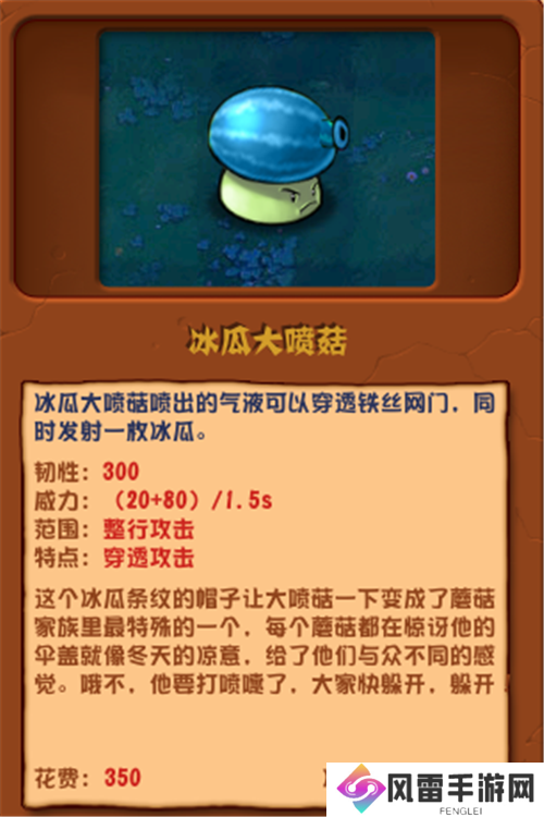 评价:第八关奖励植物,冷却快且返还阳光。前期保护单路,阳光充足后可替换为攻击植物。