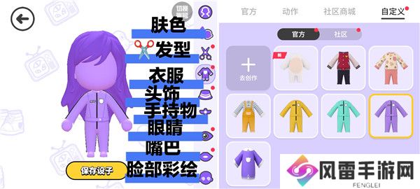 〖编辑形象〗→购买官方衣服,动作和玩家自制衣服,以及自定义更换衣服