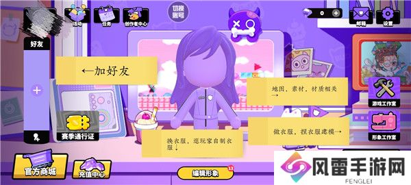 编辑形象:详尽设置,包括眉毛、耳环等,支持官方与玩家自制商品。