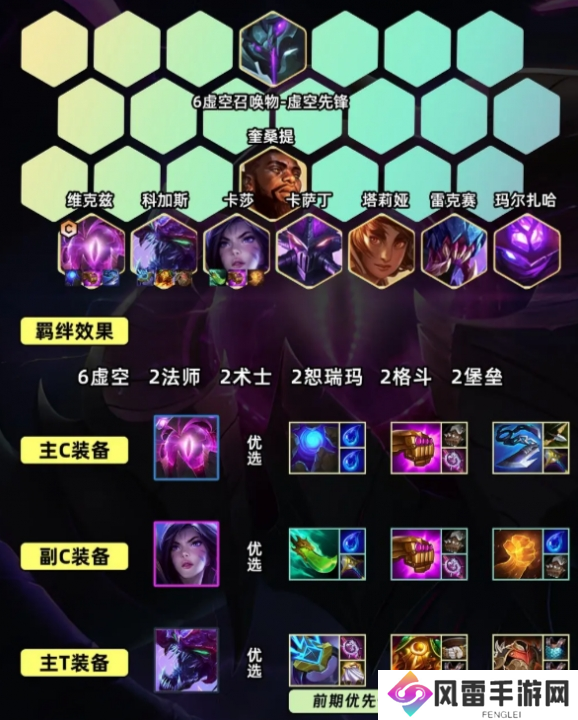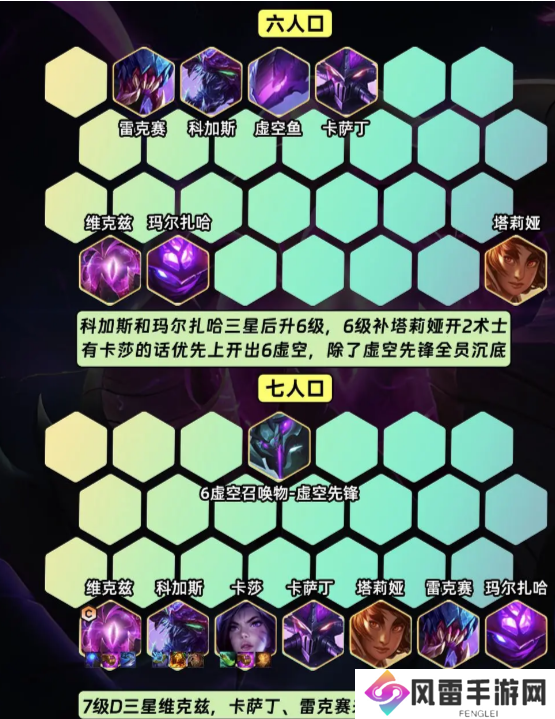 有卡莎的话优先上开出6虚空,除了虚空先锋全员沉底