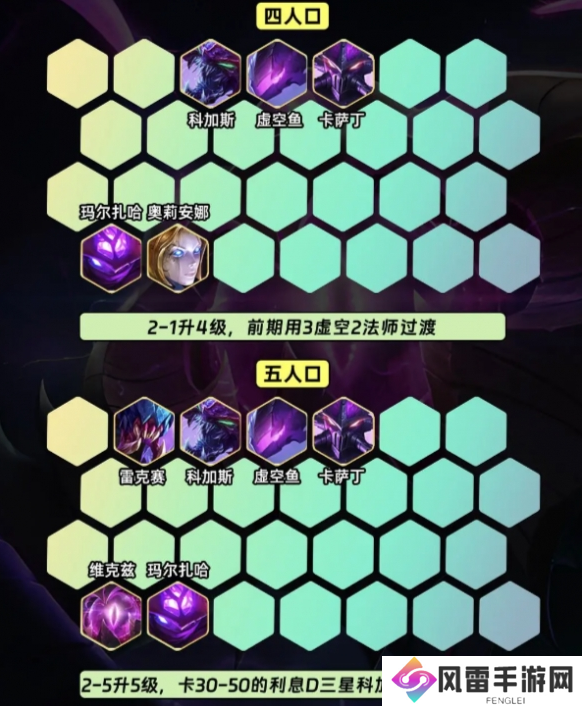 2-1升4级,前期用3虚空2法师过渡,大眼装备给奥莉安娜过渡