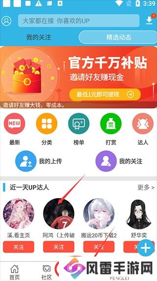 1、首先在当快站下载安装好软件,进入到主页面选择“up”功能按钮,然后点击进去找到达人排行,选择如图所示的达人。