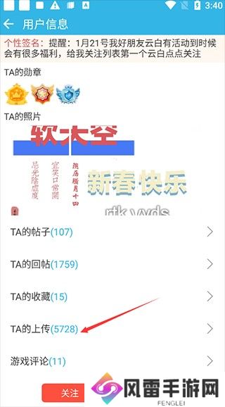 2、然后便可以点击TA的上传。