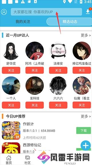 4、如果是想要找到自己想要开挂游戏的应用的话,那必须也是点击“up”功能按钮;