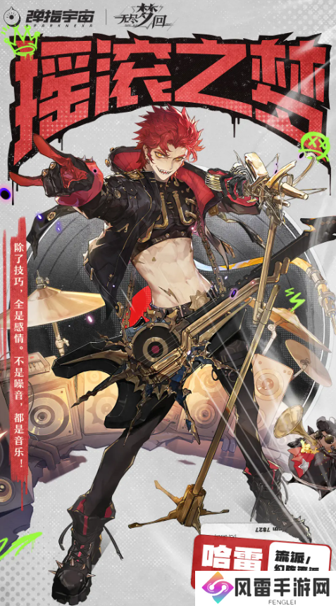 摇滚之梦也叫哈雷,他的普攻技是释放音浪攻击敌人,哈雷的生存技会向前方滑跪出场,冲刺一段距离,他的特性技是发出大范围音波持续性的攻击敌人,同时会进入混响模式,大幅度加强普攻伤害。