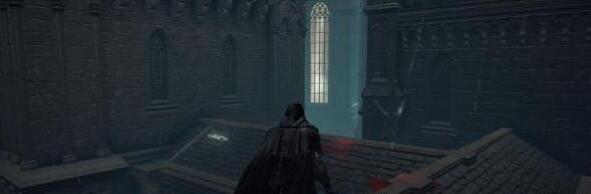 5、我们下来后顺着左手边走看到教堂房顶跳过去,从右边按前往后数第四个窗户进去即可。