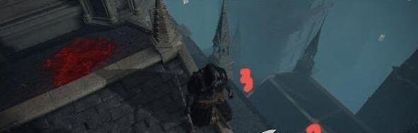 2、我们出门后从左侧土坡上去,再从左边楼梯上去后从栏杆跳下到下方楼梯,再走到头顺着光点栏杆跳下去。