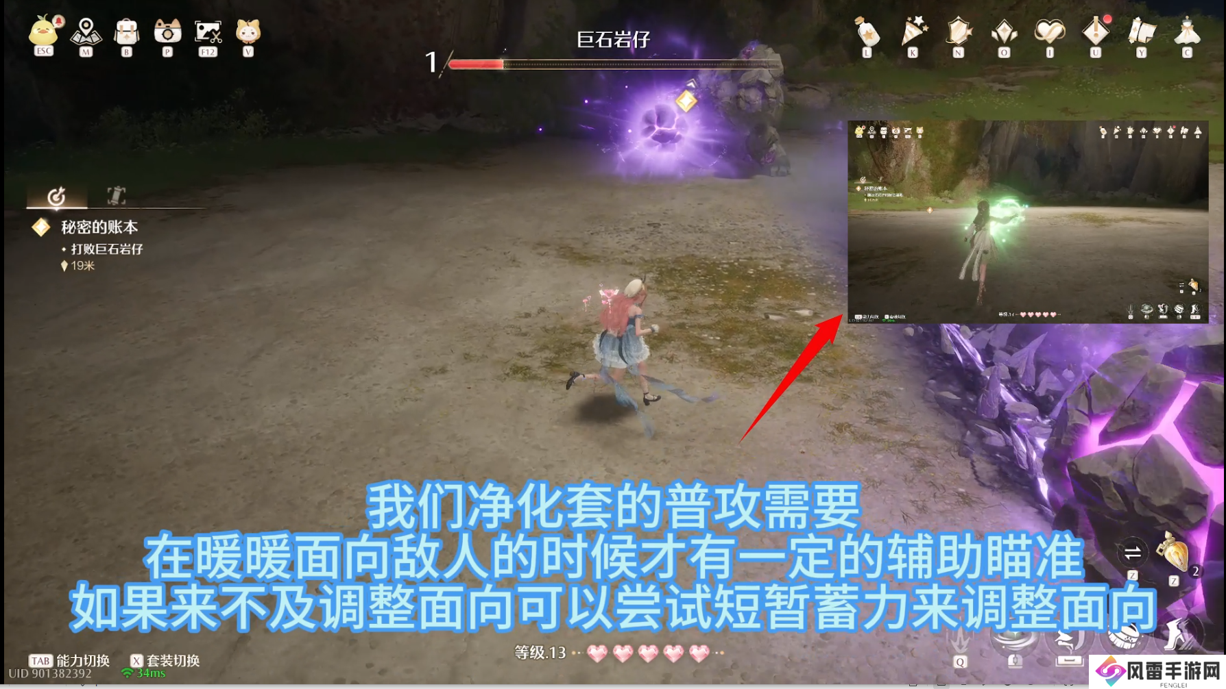 巨世岩仔开场会固定吼一声,我们的输出手段为进化套的普攻,与其保持距离。