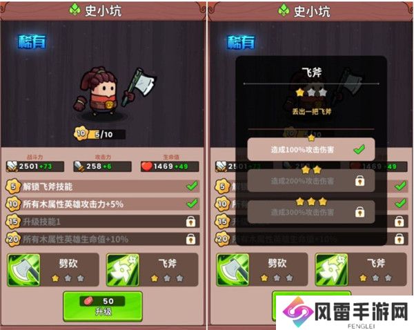 属性:木属性英雄,升级英雄提升英雄木属性伤害和生命值