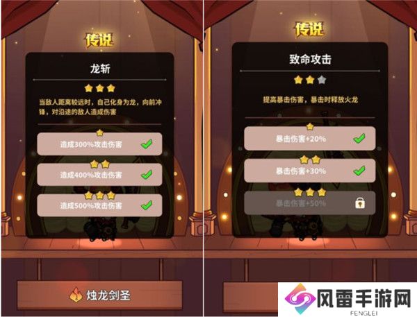 致命攻击:提高暴击伤害,暴击时释放火龙,暴击伤害+50%