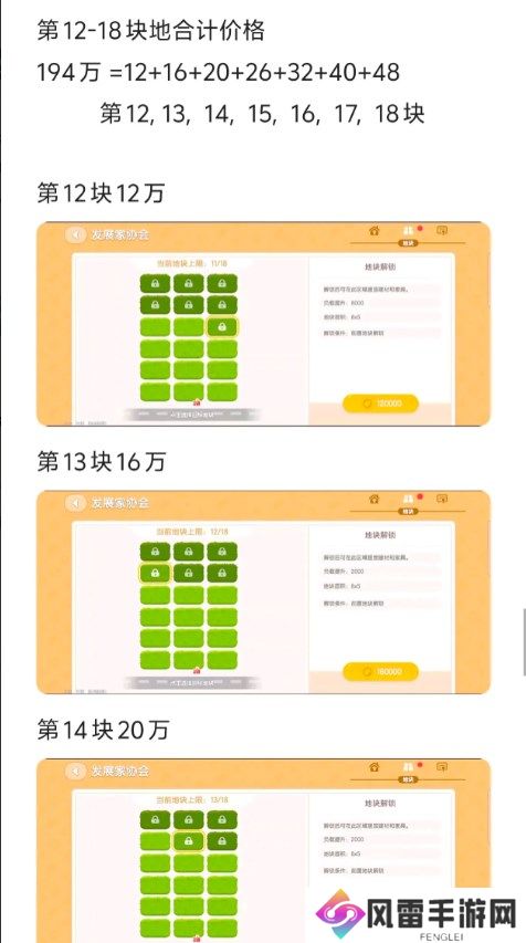 心动小镇今日新增的第12-18块地价格分别是多少?12+16+20+26+32+40+48万依次从第12块地开始算起来,加起来七块地总共购买价格为195万,一起来看看具体的心动小镇12-18块地价格明细吧。
