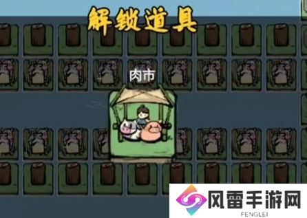 5、解锁肉市,如下图放置第一个肉市,间隔两格再放肉市;