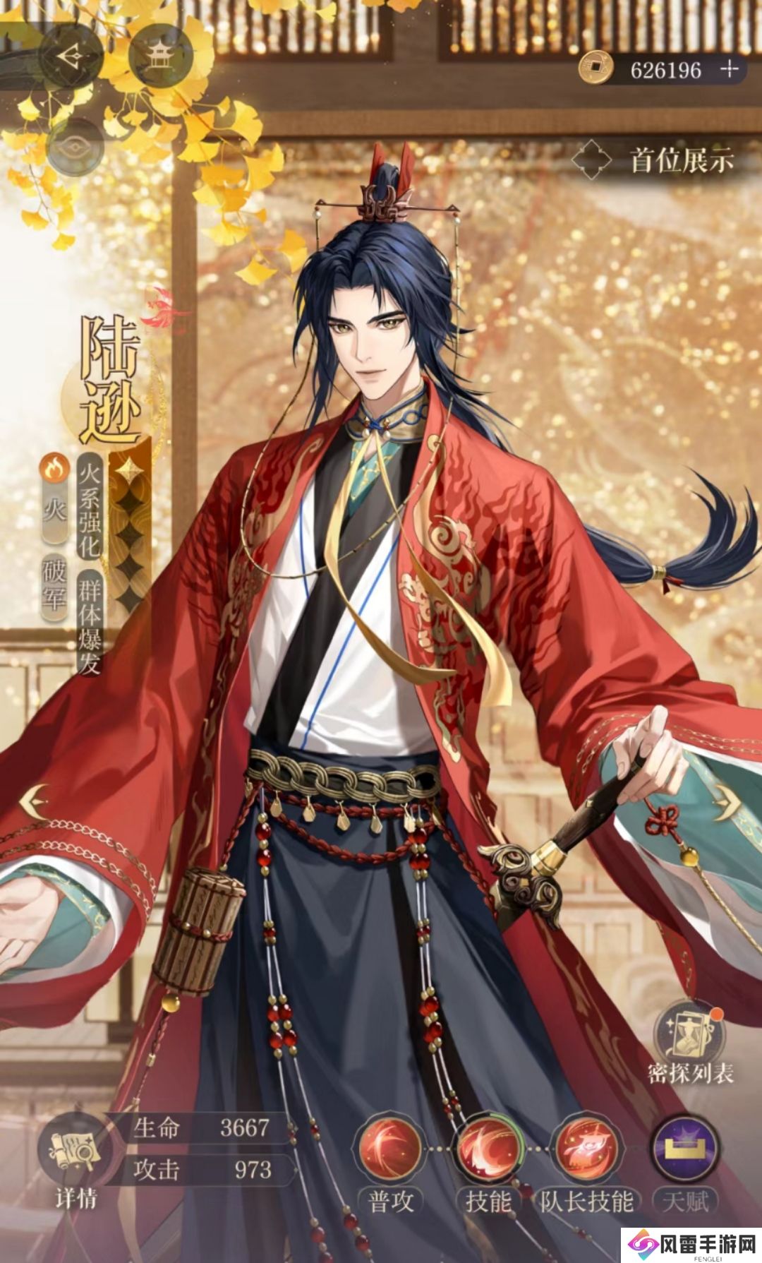 本期给大家带来的是如鸢陆逊密探介绍,这是一个火属性的密探角色,品质金,如果大家抽到他可以养一养,伤害还是很高的,但并不是必养的角色,如果前期大家密探比较少的情况下,可以考虑优先培养他。下面就一起看看这个密探都有哪些特点,以及大家该如何搭配吧!