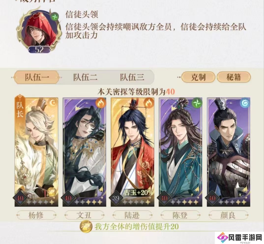 如果大家把它放在队伍的首位,那么每回合开始的时候他都能给我方队友增加攻击力,此外降低受到的伤害攻击。一般养他如果觉得伤害不够的话,大家还可以搭配一个单体输出密探,比如吕蒙和鲁肃。