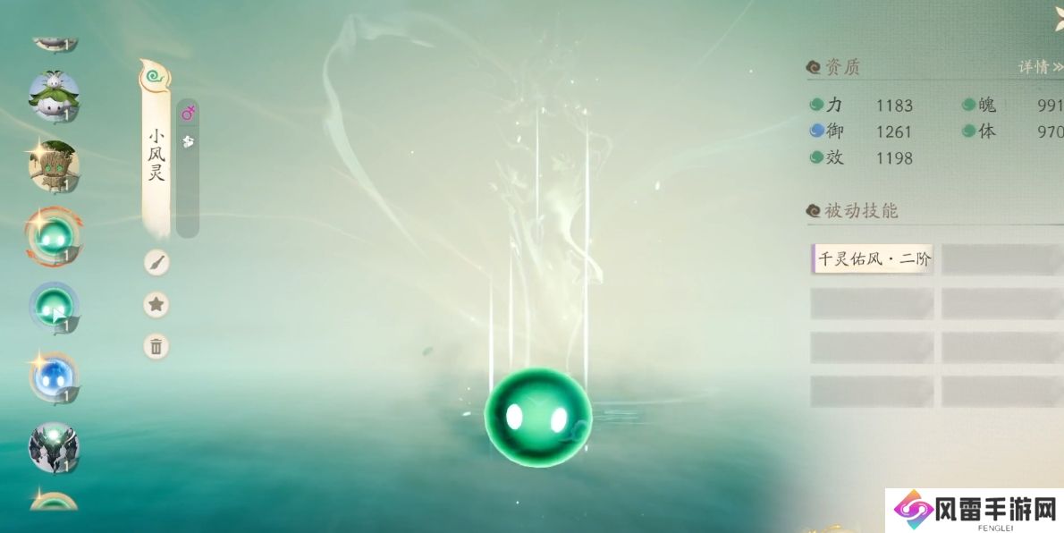 2、小风灵,属于风系属性的精灵,因为是带闪光的精灵。因此在被动技能上直接是2阶。