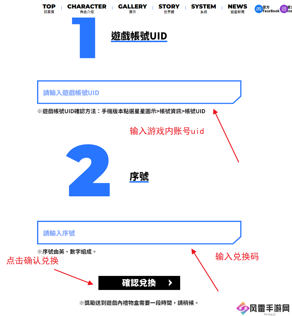 3、然后输入游戏账号UID和兑换码即可兑换,如下图。