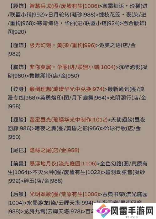 3.外套:皓月清光(璀璨华光中制作|2605)>繁华梦·珍稀(进/迷阁幻阁/缥缈轩|2495)=缱绻白羽(特姿/套装成就/凝砂|2495)>蝶舞天涯·珍稀(进/卷1-11公主级|2470)>幽夜小恶魔(图/黄昏之影|2455)=仙雾森林·珍稀(进/图|2455)