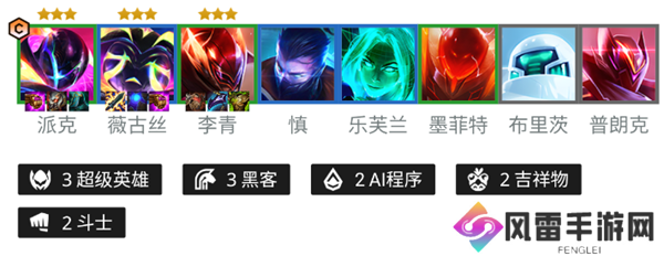 1、阵容组成:3超级英雄+3黑客+2AI程序+2吉祥物+2斗士。
