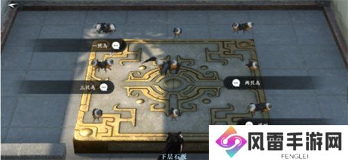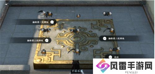5.亭子旁边有4个机关,调整到中间的正方形漏出即可。