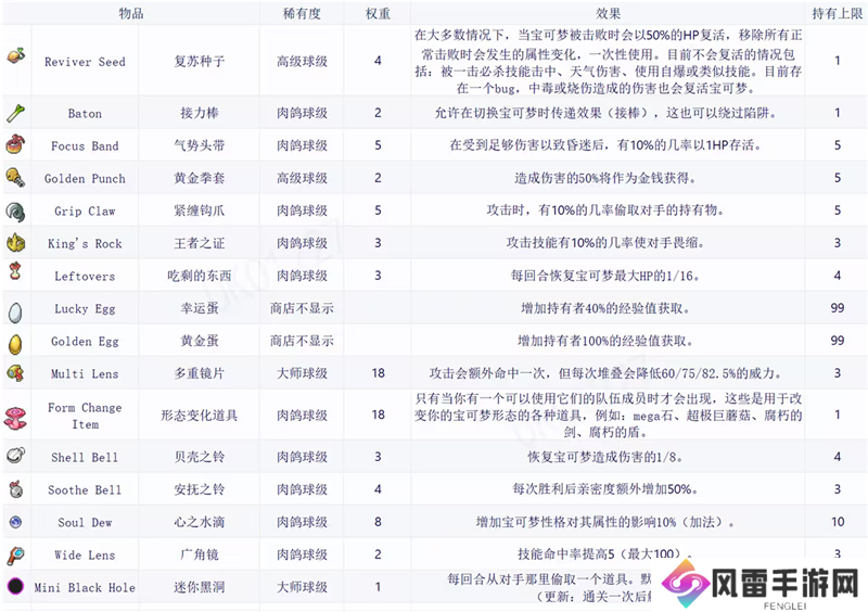 宝可梦肉鸽全道具详解及图鉴/宝可梦肉鸽重要道具介绍