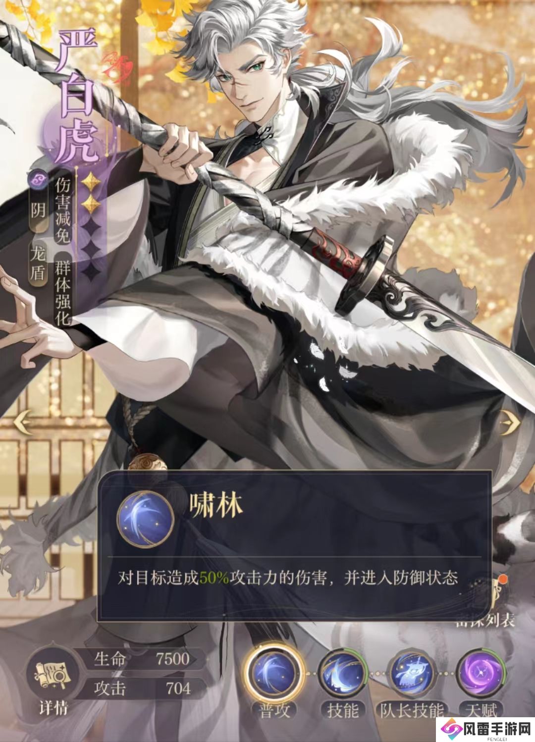 综上就是有关严白虎相关角色的信息情况,至于如鸢严白虎值得培养吗?小编的建议是在前期的时候,小伙伴们抽到了是可以养的,但是他的攻击能力以及防御能力并不是特别的具有优势,个人能力还不错,但毕竟小伙伴们玩的是队伍形式的游戏,所以到后期不用投入过多的资源。