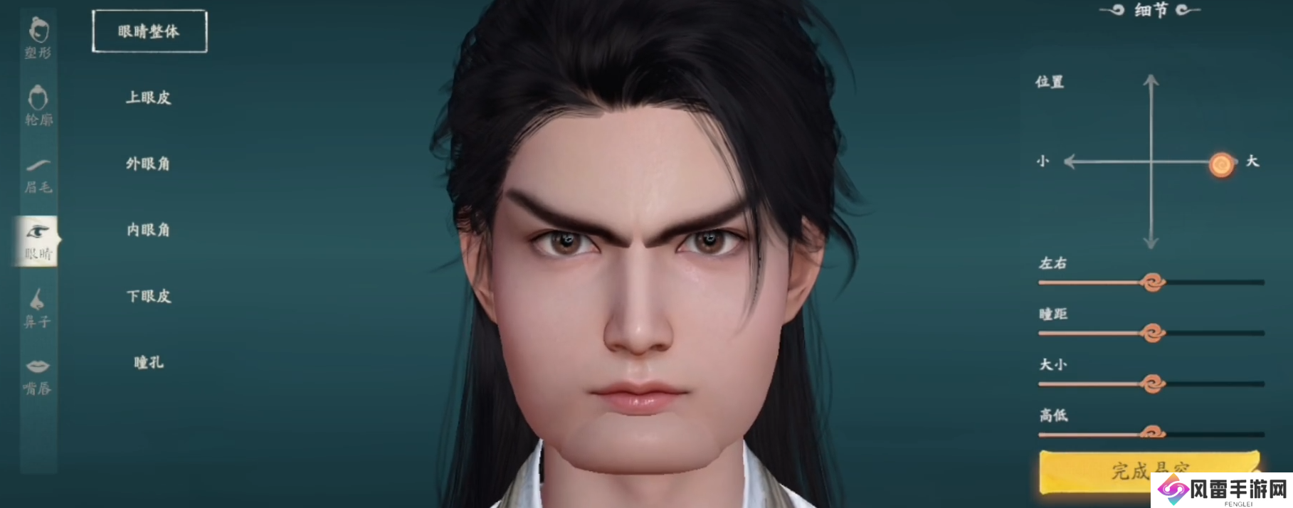 甚至眉毛都可以随心调节,这样让你无需去做眉毛。便能从左右长短、高度等选项灵活调节,就能打造出最终的造型。然后是大家最关心的眼睛,在这你能自由更改瞳孔颜色。又能调节眼睛大小,甚至可打造出凤眉眼或者浓眉大眼。
