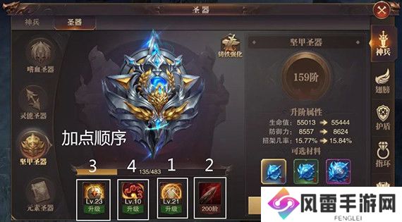 解析:为啥说坚甲是圣器中的核心呢,主要还是在于他的第三层“坚甲铁壁”带来的是PVP伤害百分比减少,这个属性一般只有在套装、大天使套装、圣装、指环这些珍贵装备中才会有,这个属性也是PK必备强大属性,那么我们推荐所有玩家优先提升第三层“坚甲铁壁”,甚至可以保留在未激活第三层的情况下保留必要材料,前面1-2层简单提升,后面主提升这个属性。综合一下坚甲提升顺序第三层“坚甲铁壁”、第四层“坚甲反击”、第一层“坚甲守御”、第二层“坚甲沸血”。
