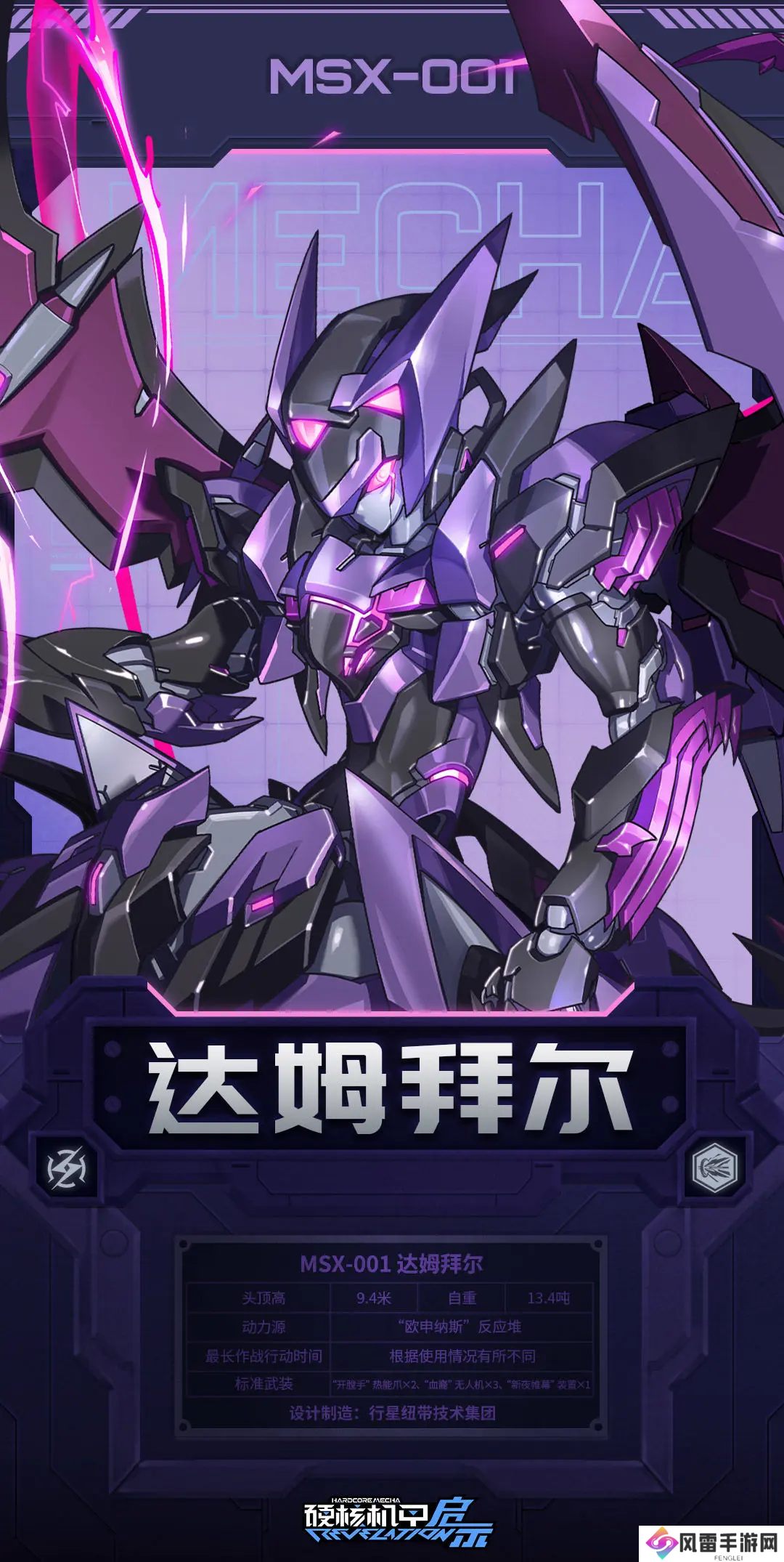 拥有“内构破坏”的特性,特性的机甲可以造成更多的瘫痪值,使敌人陷入过载或瘫痪状态时触发的额外伤害也更高,适合迅速瘫痪敌人,会后续的输出创造机会。它的终极武装“黑暗领域”值得一提,它会使用热能爪对周围的敌人发动五次攻击,随后将环绕自身飞行的蝙蝠无人机召唤出来,对触碰的敌人造成物理伤害。