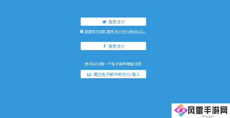 1、如已有账号,可使用推特以及FB账号登录,如没有账号可以通过邮箱注册;