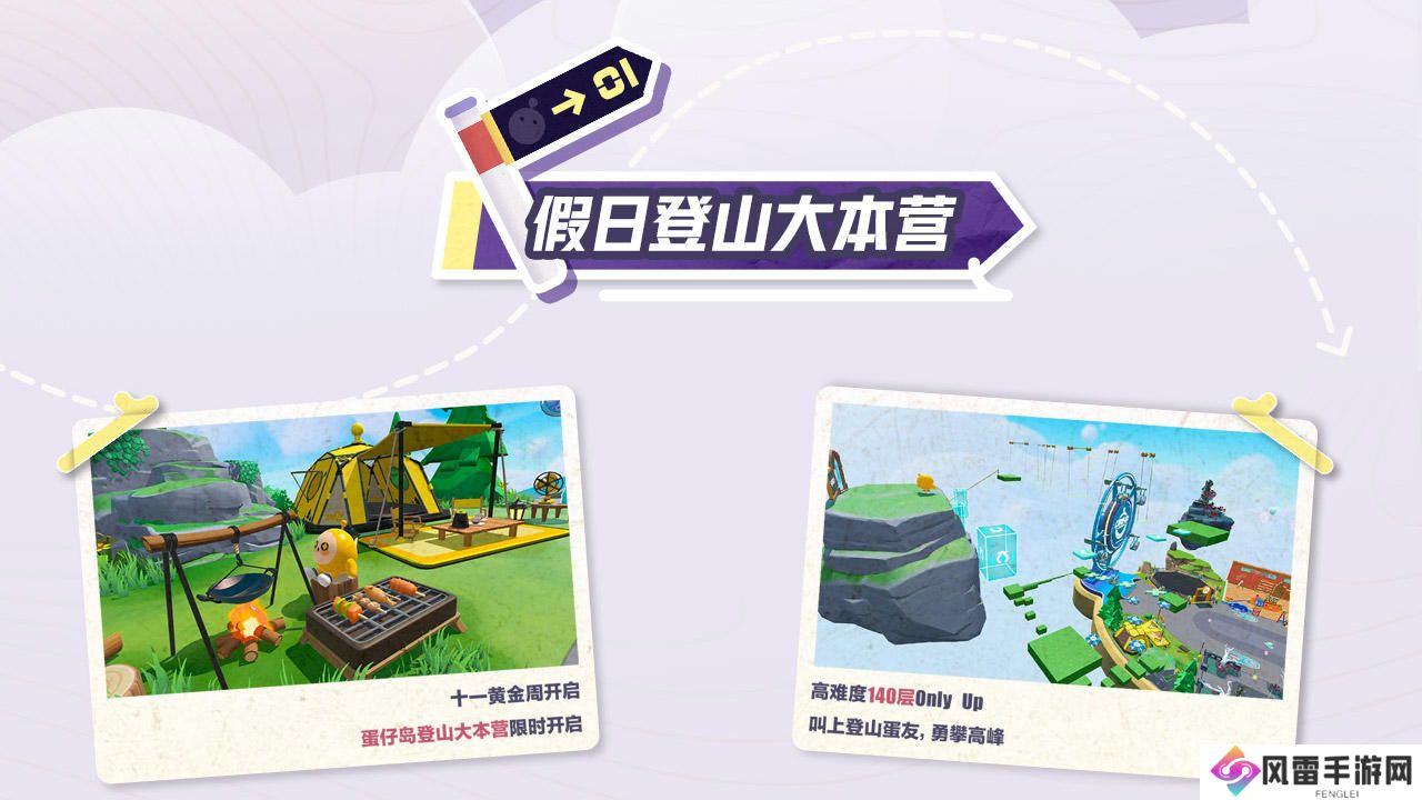 35款免费好礼,加入假日狂欢,外观“山顶小篷”、玩具“登山旗”、乐器“枫木小提琴”、呦呦“登山客”等参与活动即可收入囊中;