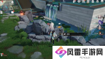 2、到达传送点后,可以在附近水池旁边看到一个小假山