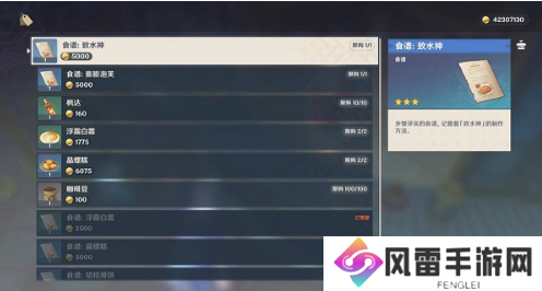 原神致水神食谱大全 致水神食谱获取攻略