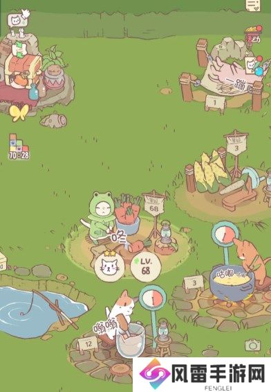 每个猫的技能不一样星级也不同,技能对应加成,如切卷心菜,洋葱胡萝卜等等,选择对应的岗位就有加成,加成按星级高低递增,选择正确则如p1带有星级标识,猫咪的加成也对应好感p2喂鱼(每天有六次机会钓鱼)蛋糕增加。